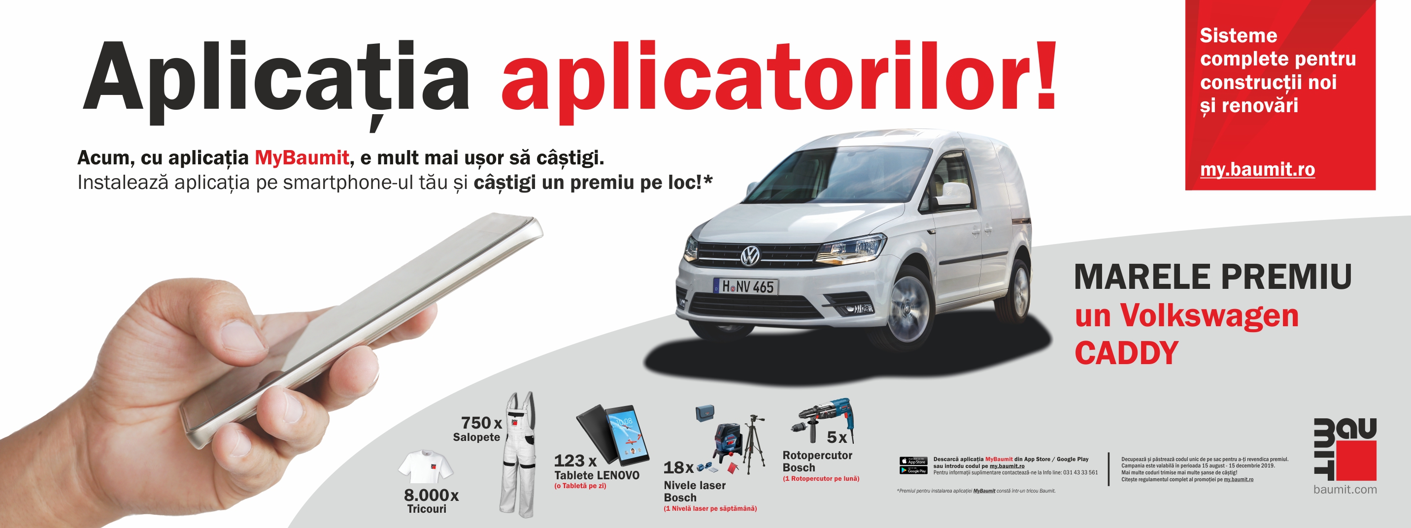 Înscrie codul unic de pe produsele promoţionale din campaniile active Baumit și poţi câștiga din mii de premii.